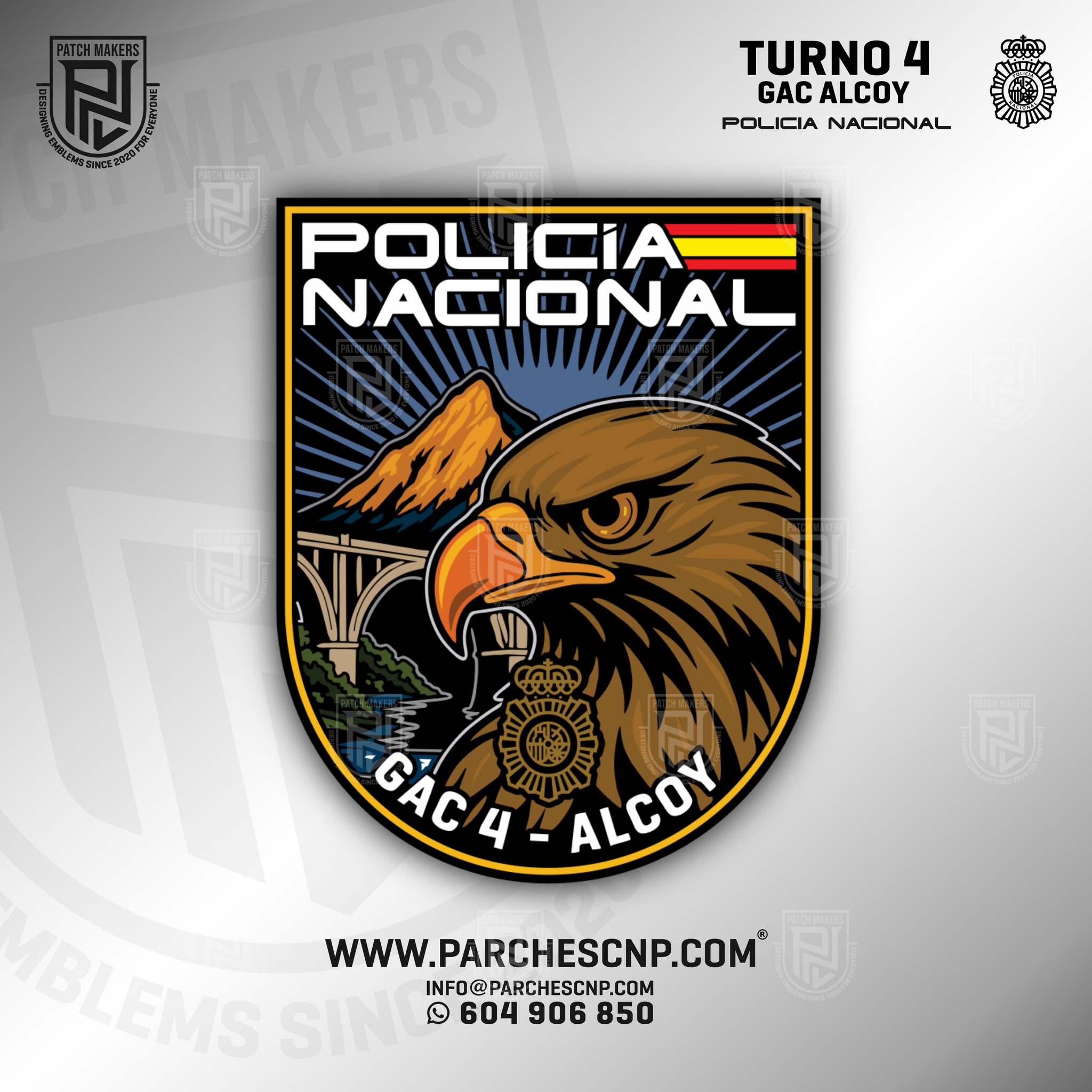 Parche de brazo de 8x6,5 cms de PVC de alta calidad con velcro trasero. Parche diseñado, fabricado y distribuido exclusivamente por Parches_CNP.