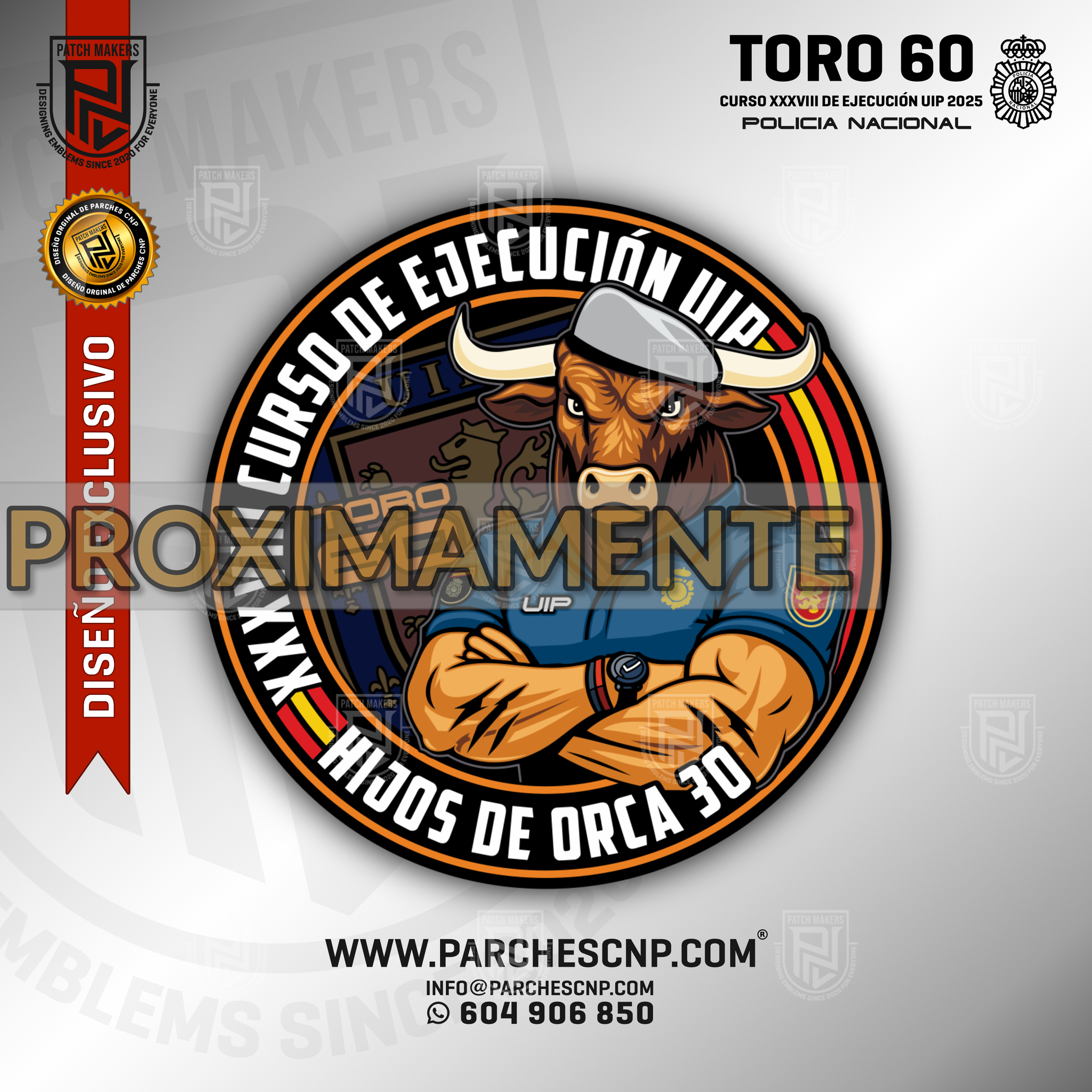 Emblema realizado para los compañeros que se encuentran realizando el curso de ejecución para UIP XXXVIII en Linares en los meses de OCT-NOV de 2025 con indicativo TORO 60 - HIJOS DE ORCA 30.