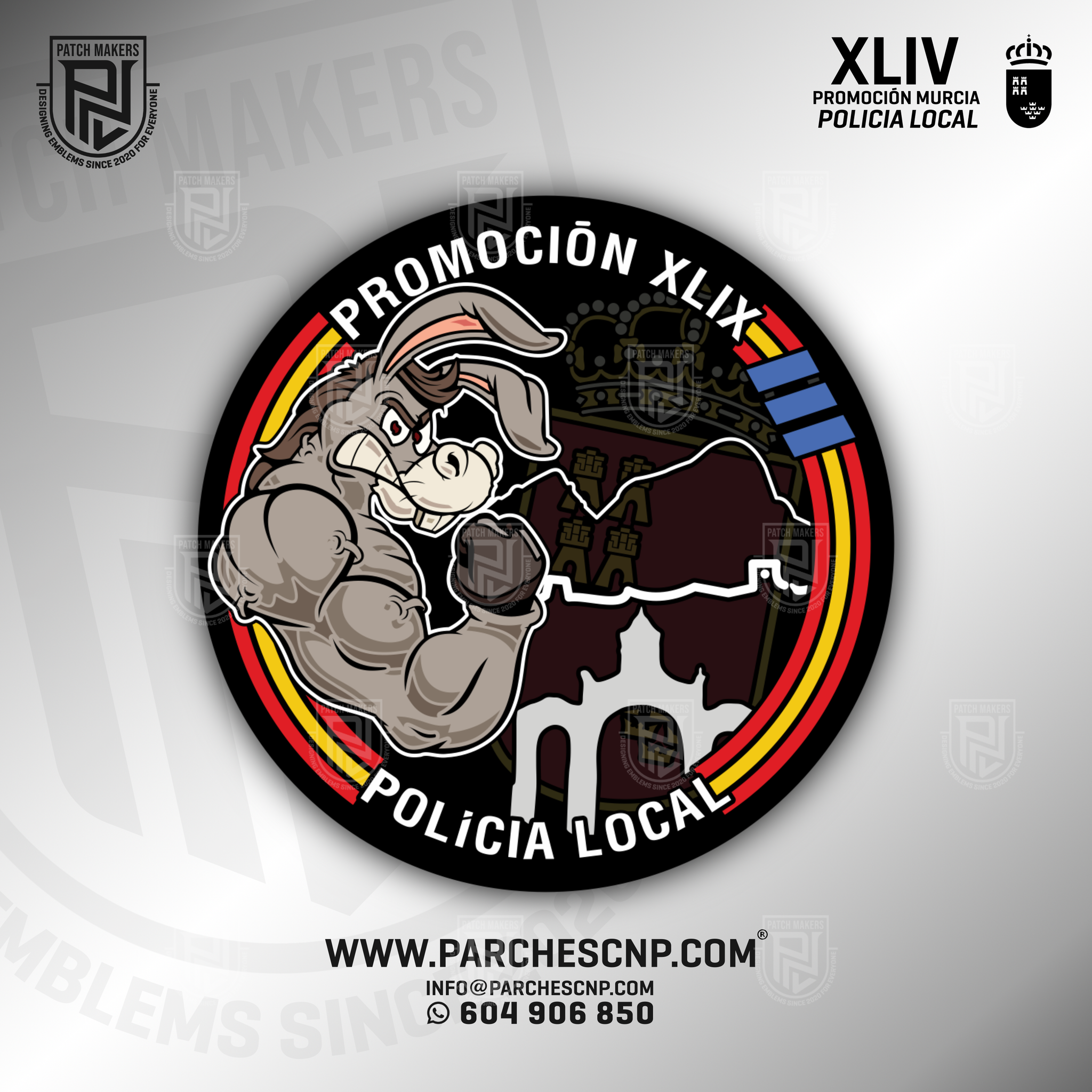 Emblema conmemorativo de la Promoción XLIV de la Policía local de Murcia.Emblema de 8,5 cms de diámetro de PVC de alta calidad con velcro trasero.